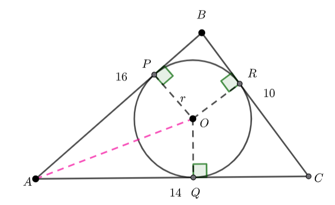 We also know the area of triangle \Delta{ABC}=sr where r is the radius of the inscribed circle.