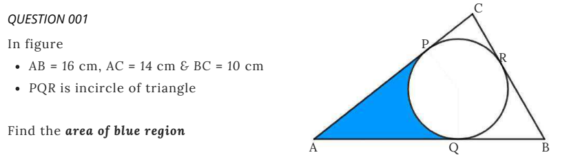 Filed under Algebra, Area, Finding an angle, Finding an area, Geometry, Heron's Law, Interesting Mathematics, Puzzles, Radius and Semi-Perimeter, Right Trigonometry, Solving Equations, Trigonometry