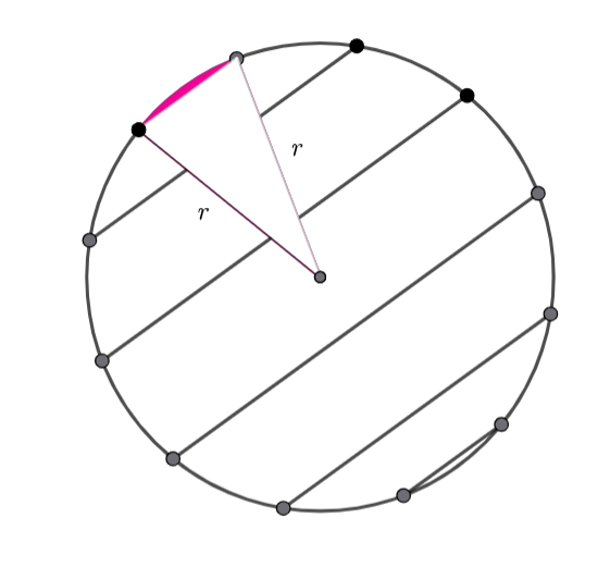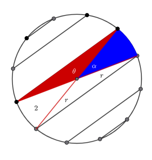 As the dots are equally spaced, the sector’s angle is ![]()