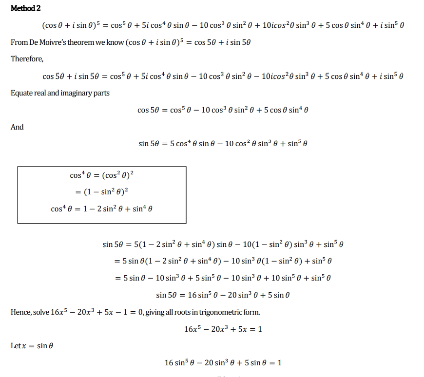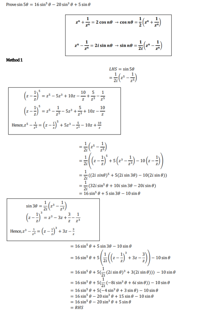 My Year 12 Specialist Students are using complex numbers to prove trigonometric identities.
